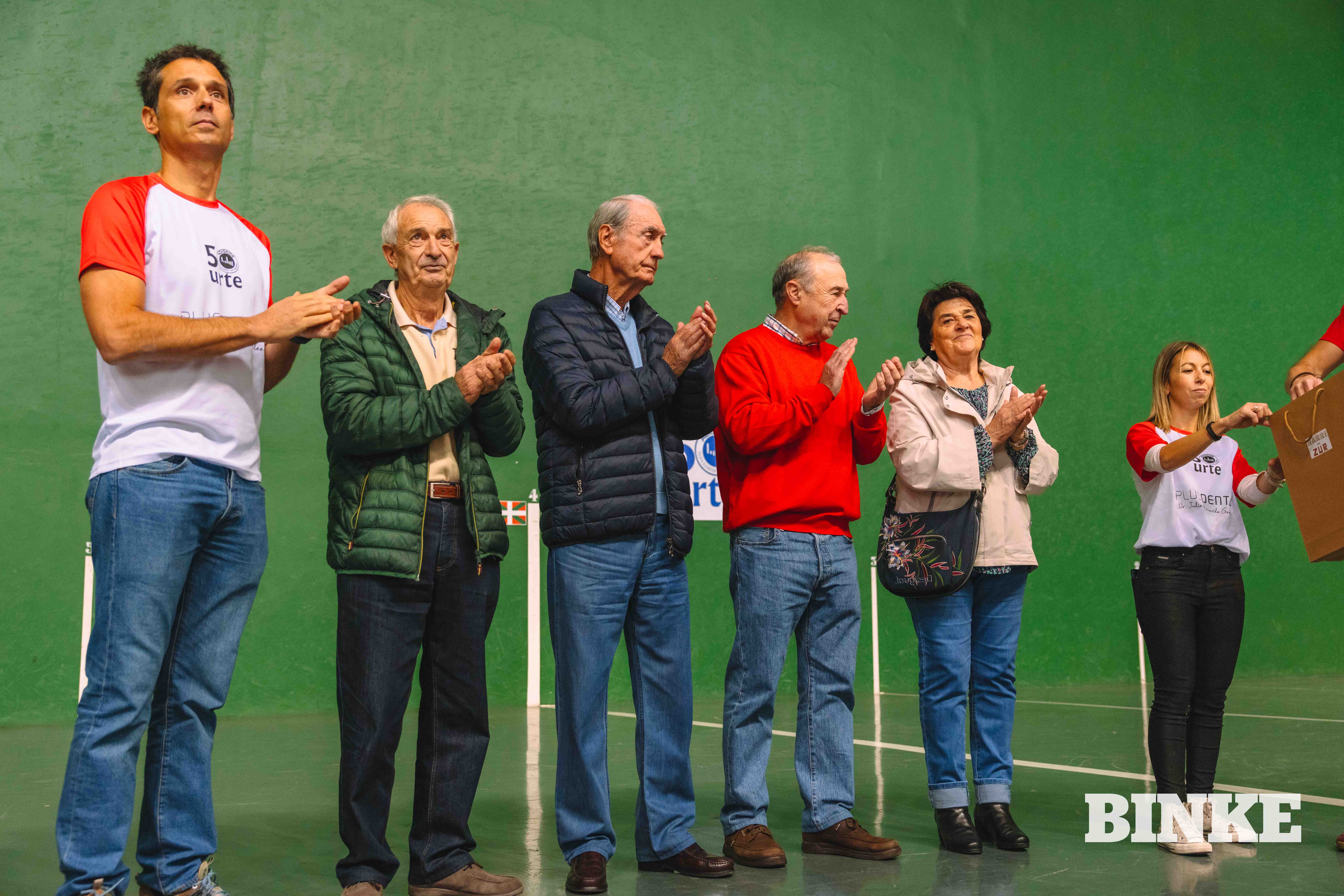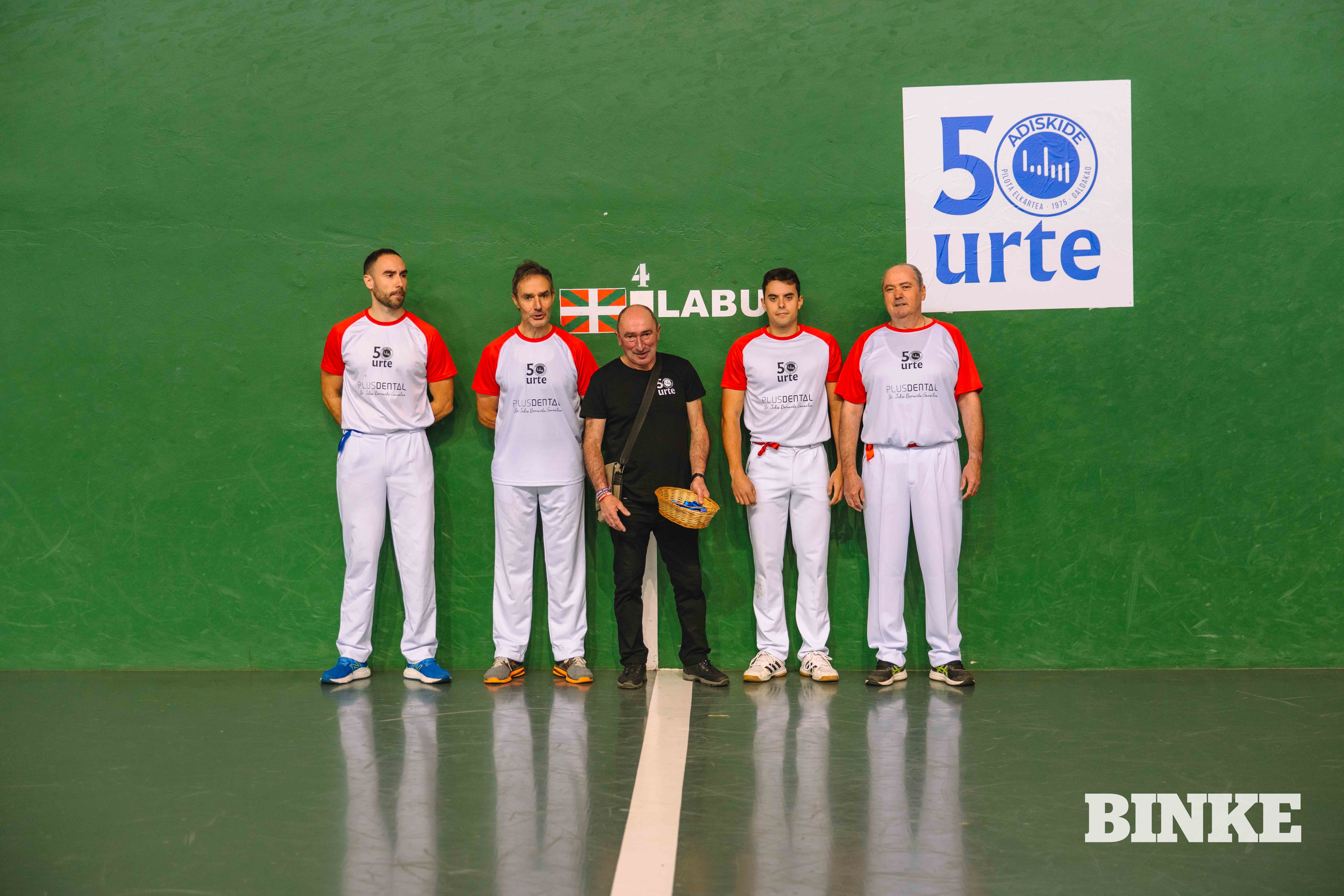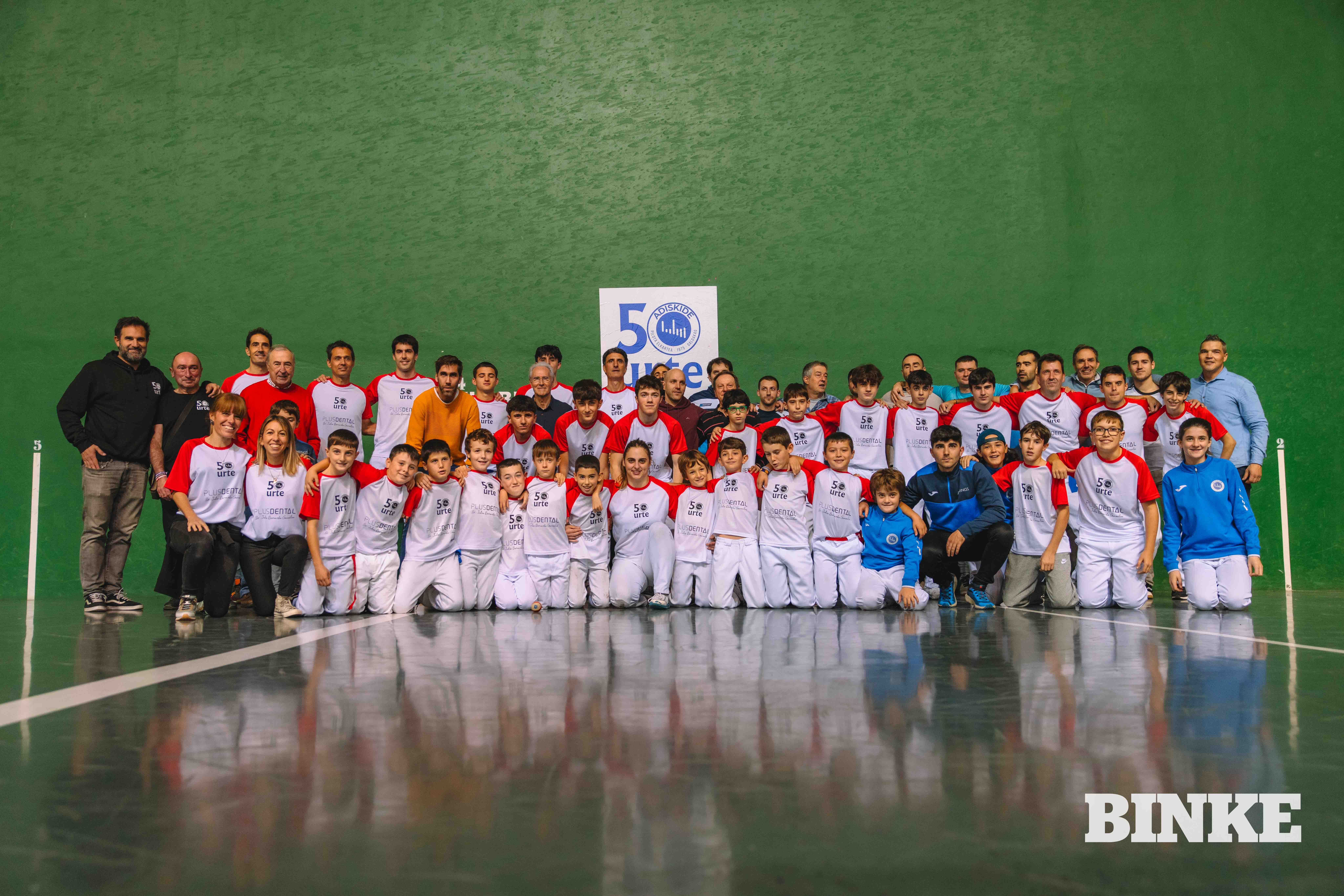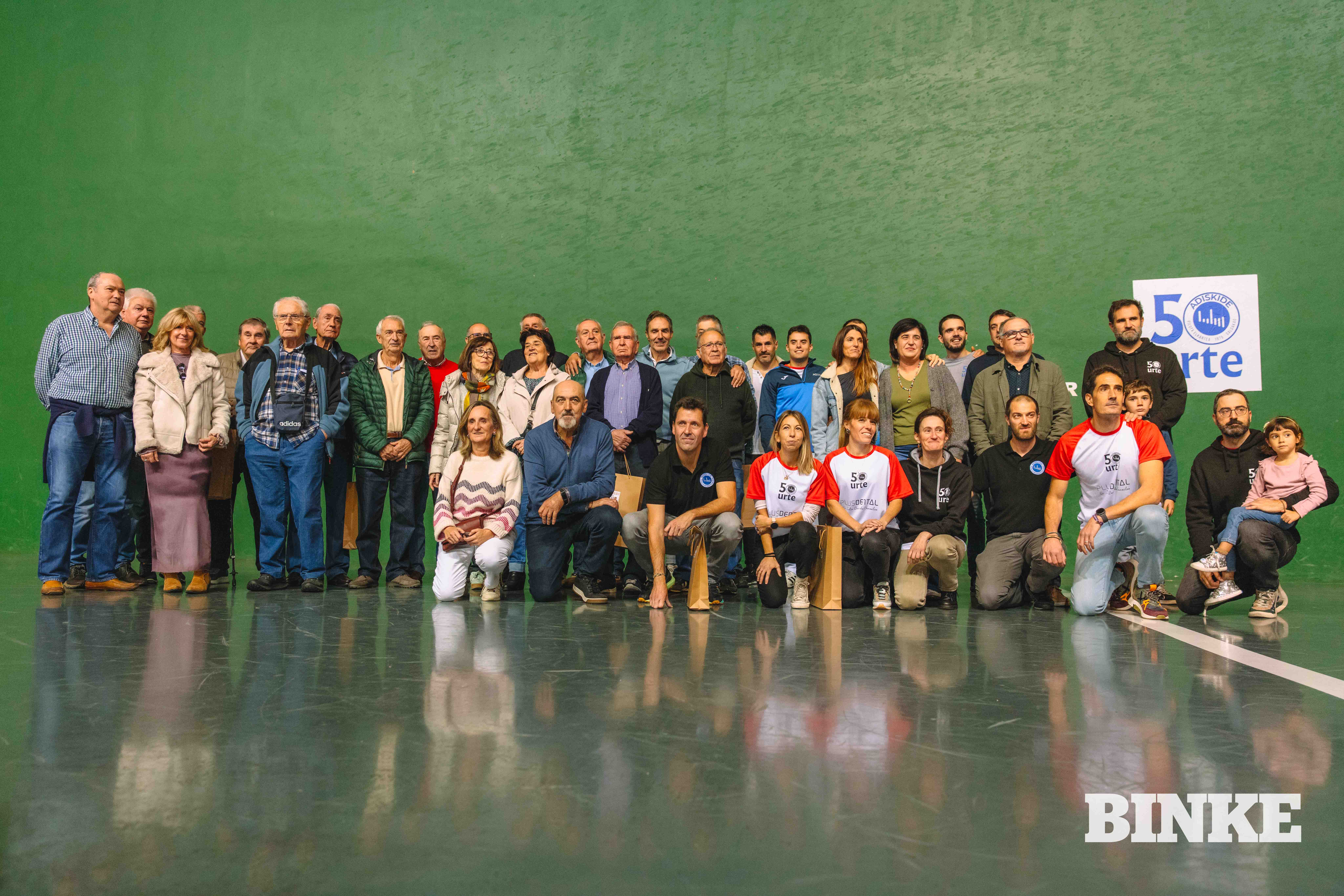 Egun berezia bizi zuen atzo Adiskide Pilota Elkarteak. Belaunaldi guztietako pilotari eta herritarrak batu zituen Kurtzeko frontoian, 50. urteurrena ospatzeko.
