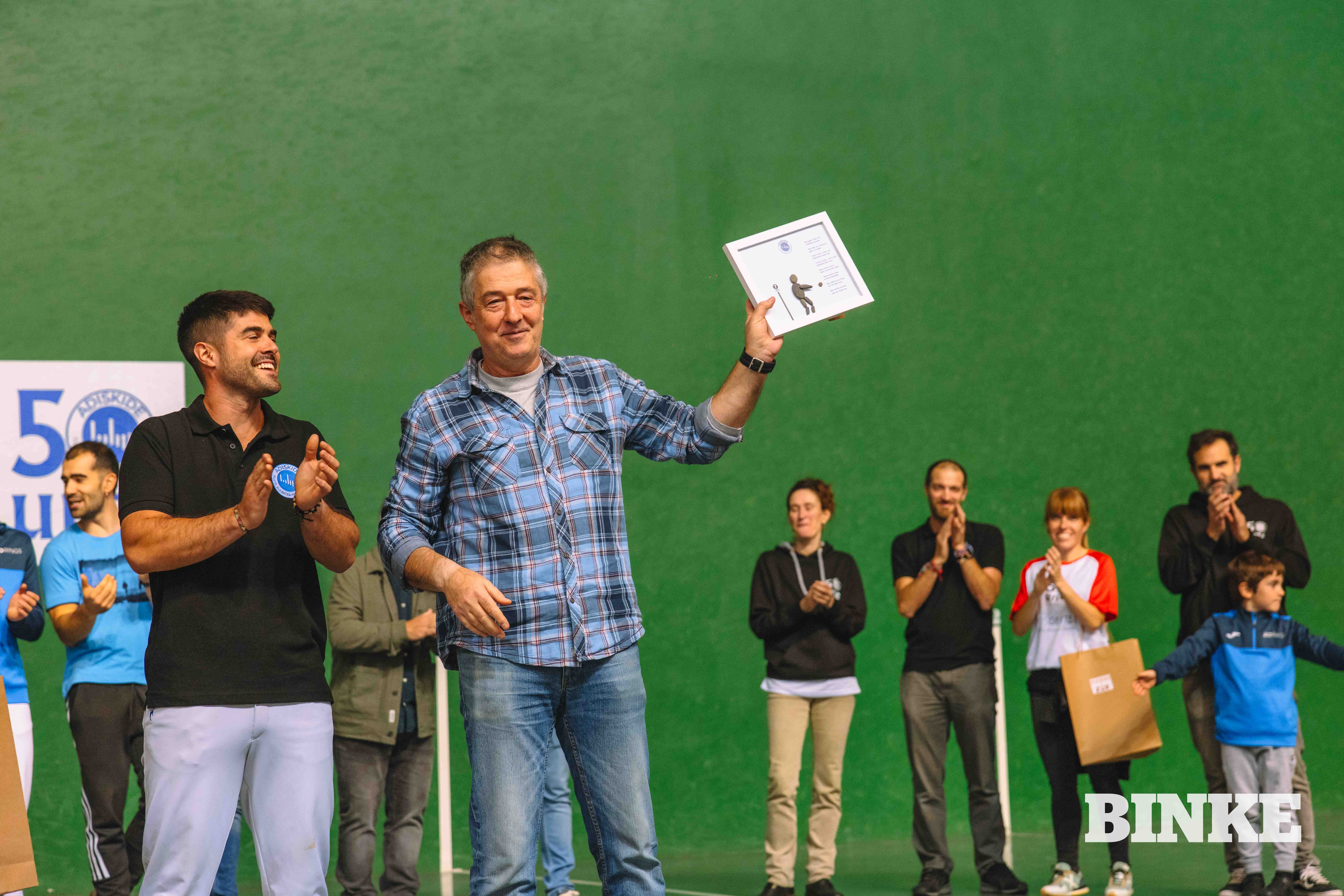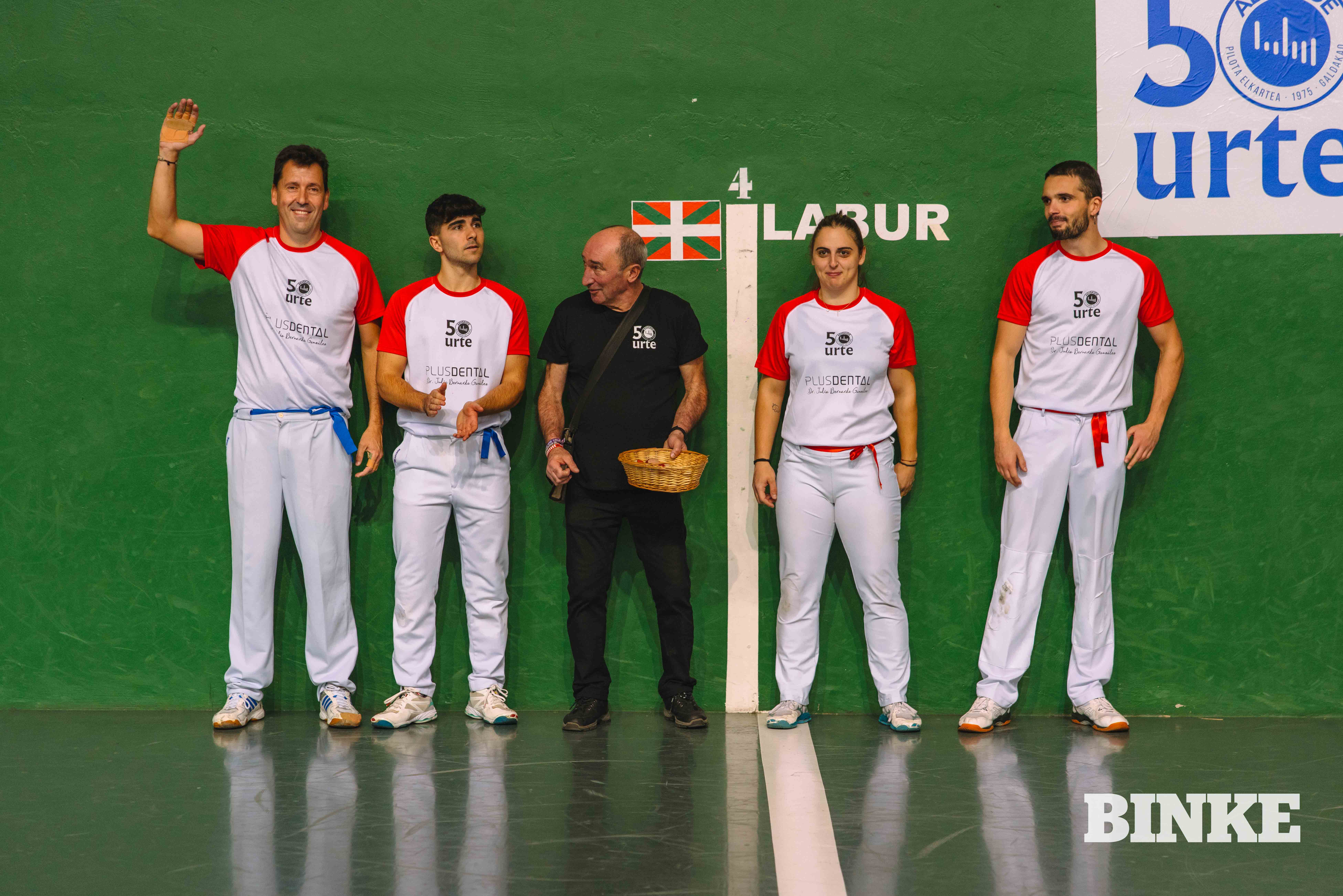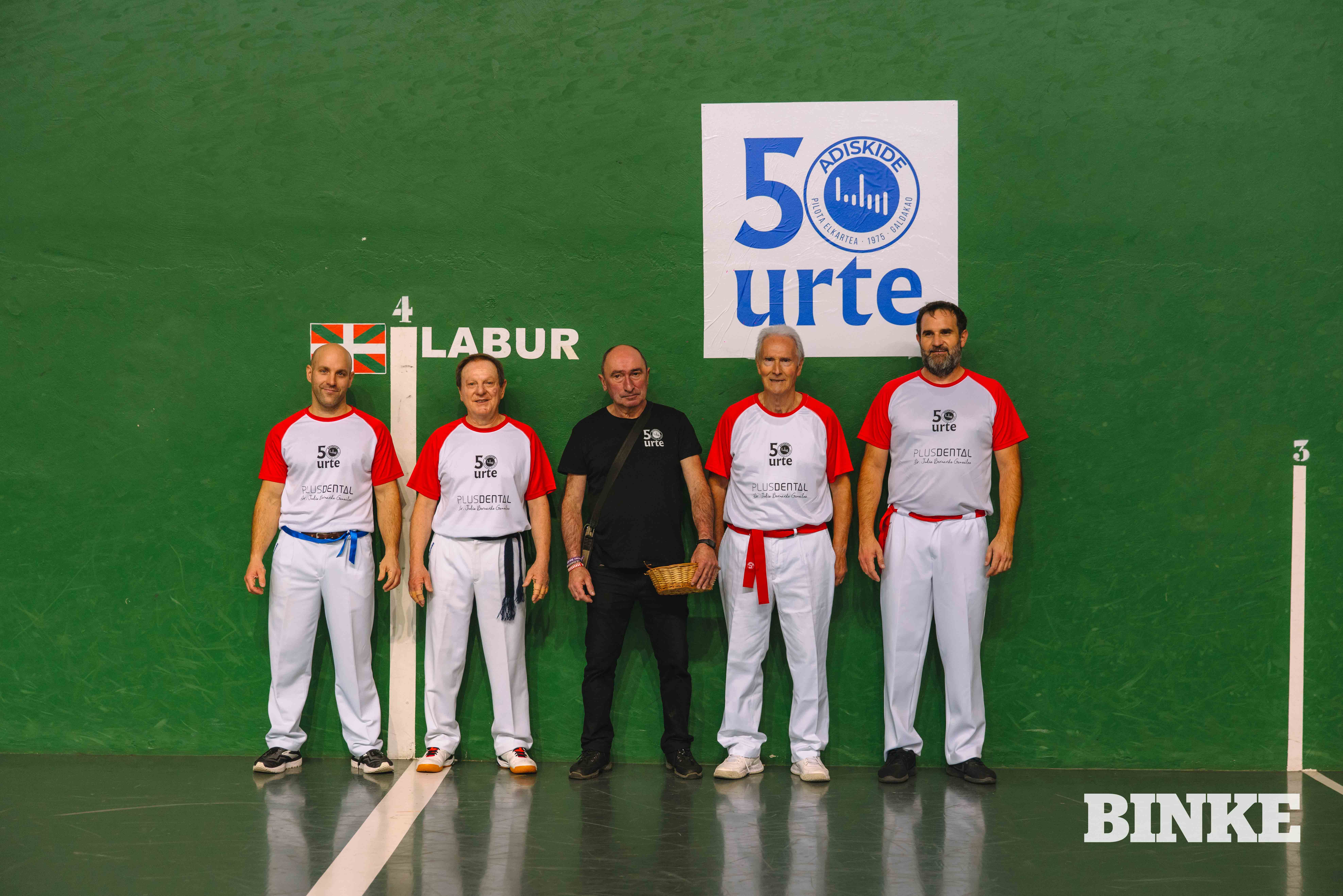 Egun berezia bizi zuen atzo Adiskide Pilota Elkarteak. Belaunaldi guztietako pilotari eta herritarrak batu zituen Kurtzeko frontoian, 50. urteurrena ospatzeko.