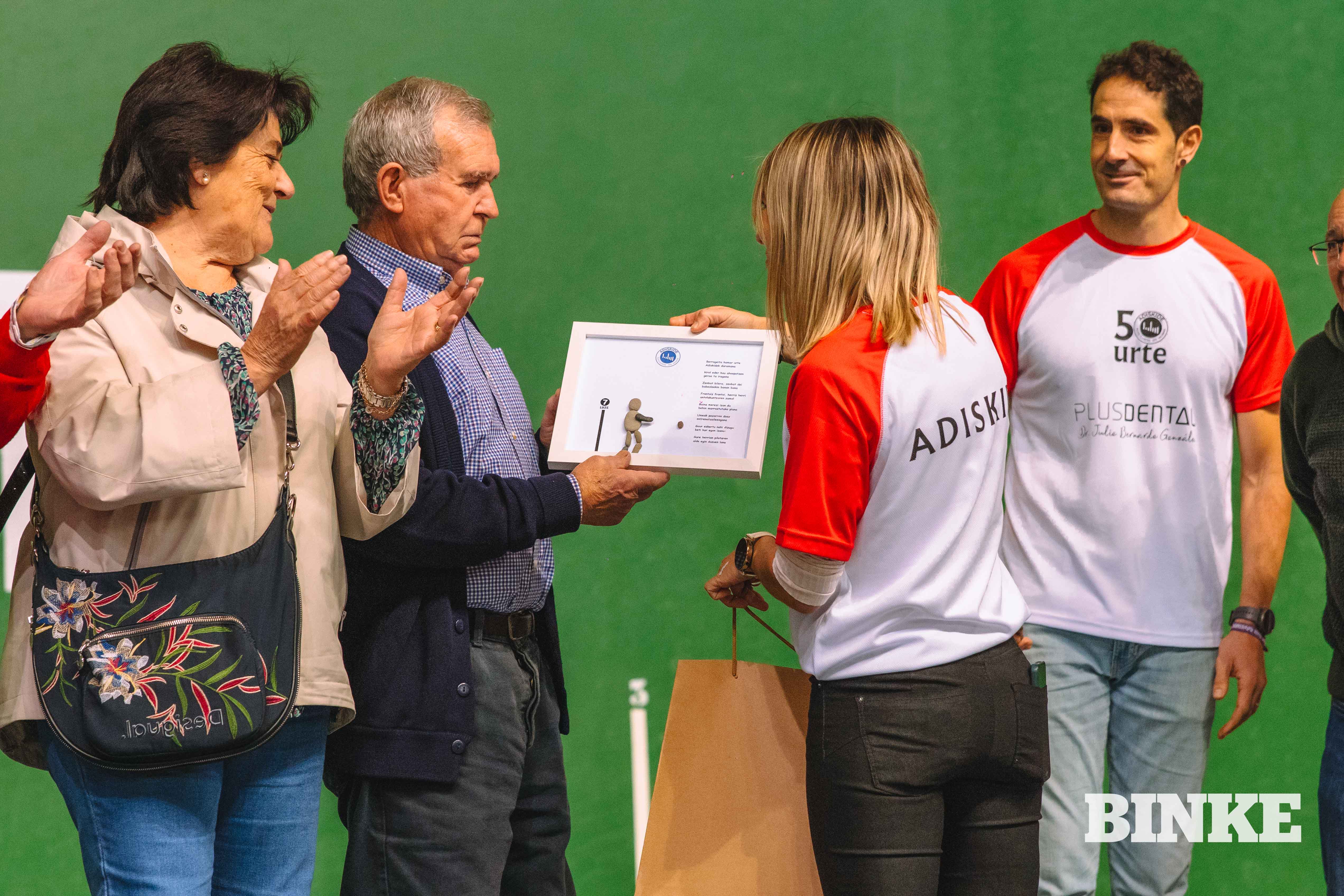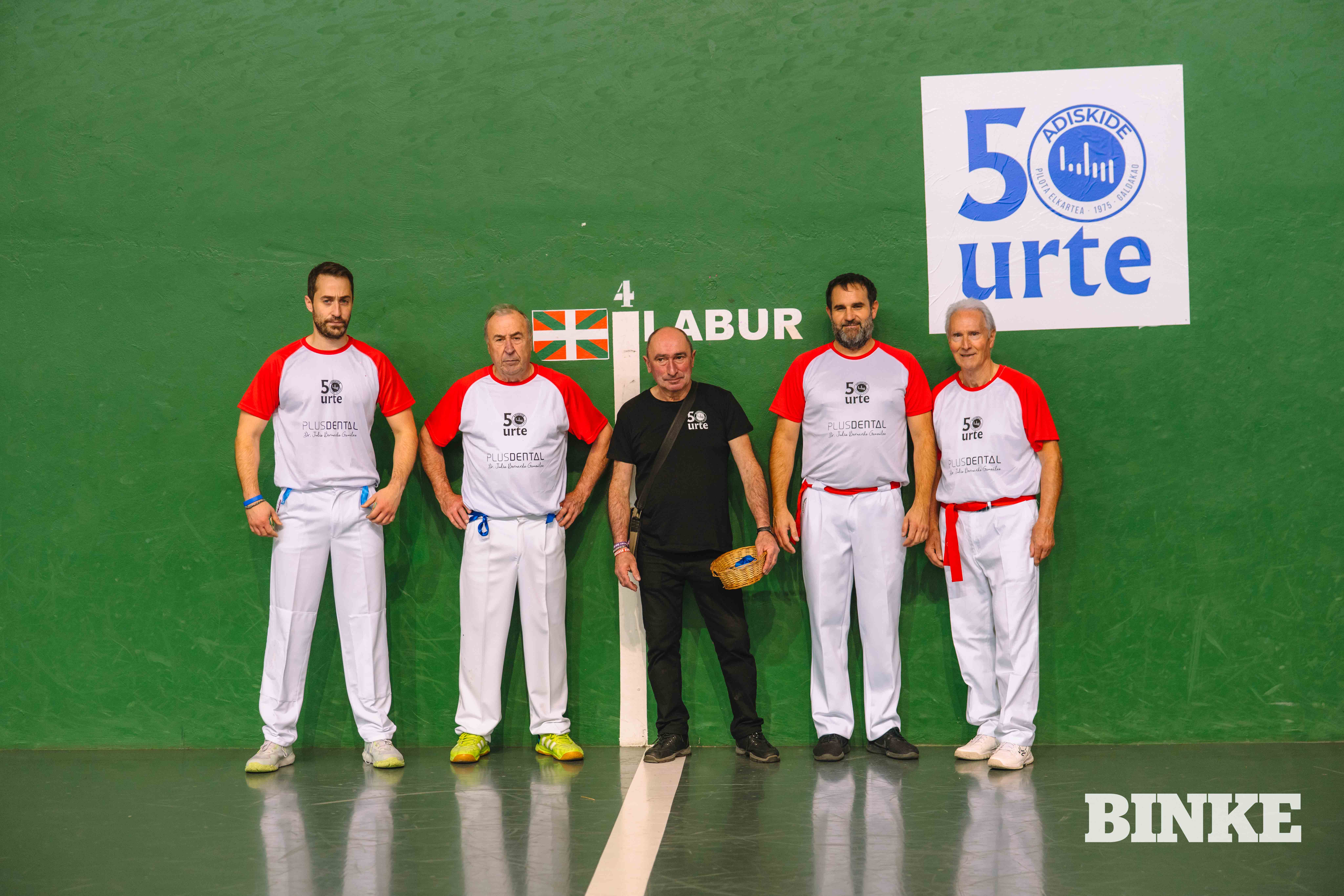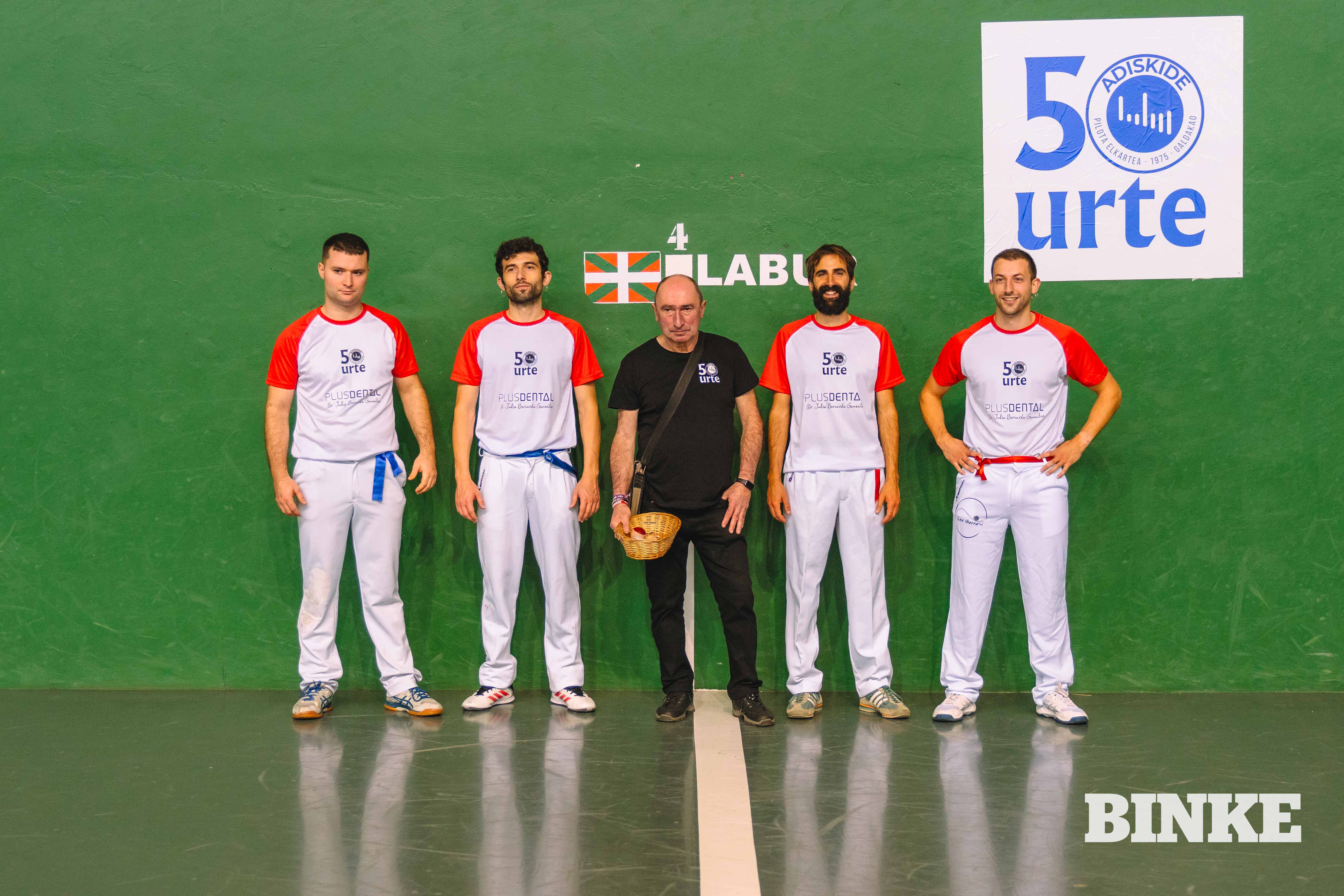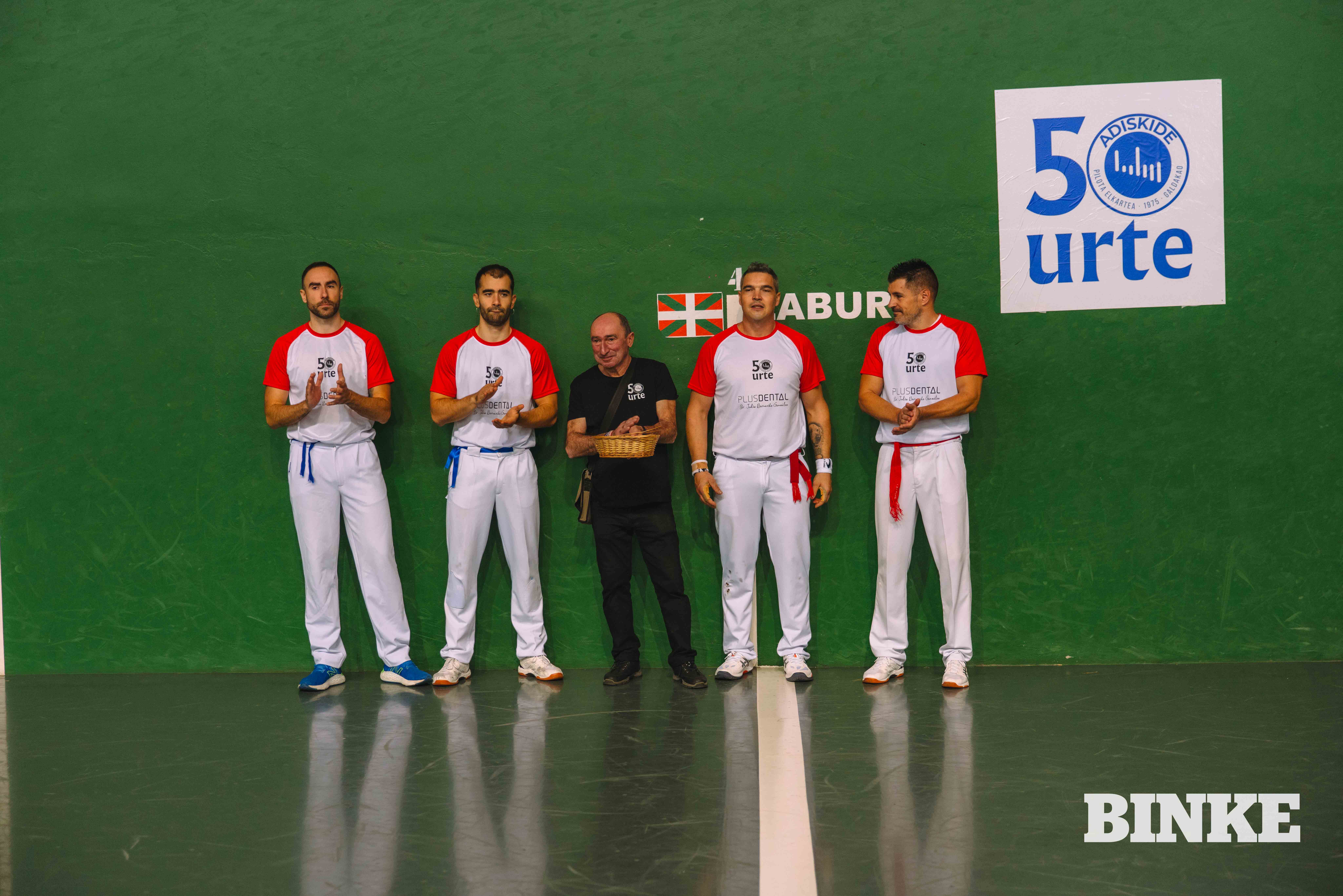 Egun berezia bizi zuen atzo Adiskide Pilota Elkarteak. Belaunaldi guztietako pilotari eta herritarrak batu zituen Kurtzeko frontoian, 50. urteurrena ospatzeko.