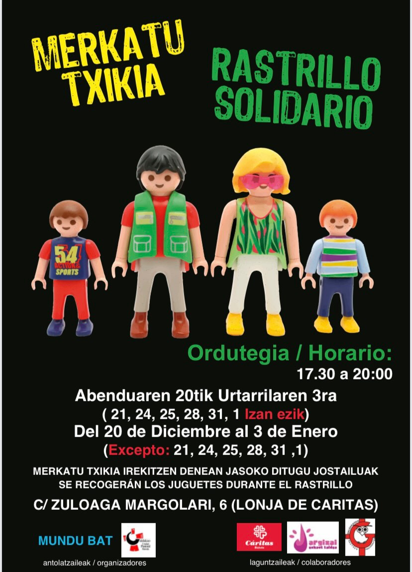 Ordutegia aldiz 17:30-20:00 izango da eta jostailu berriak (panpinak, bizikletak, liburuak…) zein bigarren eskukoak hartuko dituzte, beti egoera onean badaude.