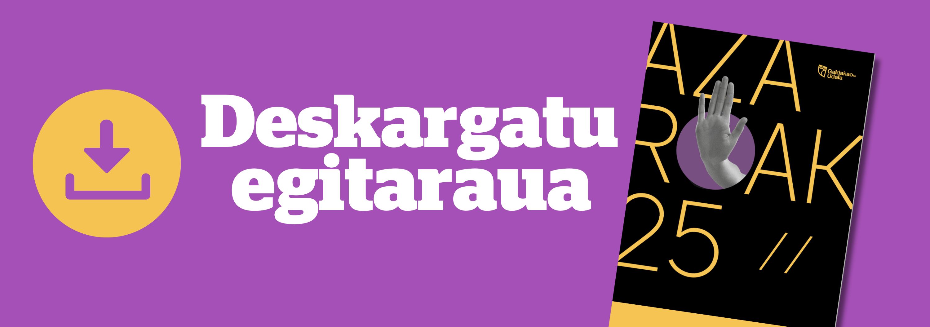 Azaroaren 25ean Emakumeen Aurkako Indarkeria Ezabatzeko Nazioarteko Eguna da eta Galdakaok bat egingo du horrekin aurten ere. Horretarako, hainbat ekintza antolatu dituzte Udalak eta herriko eragileek. Hemen batu dugu egitarau osoa.